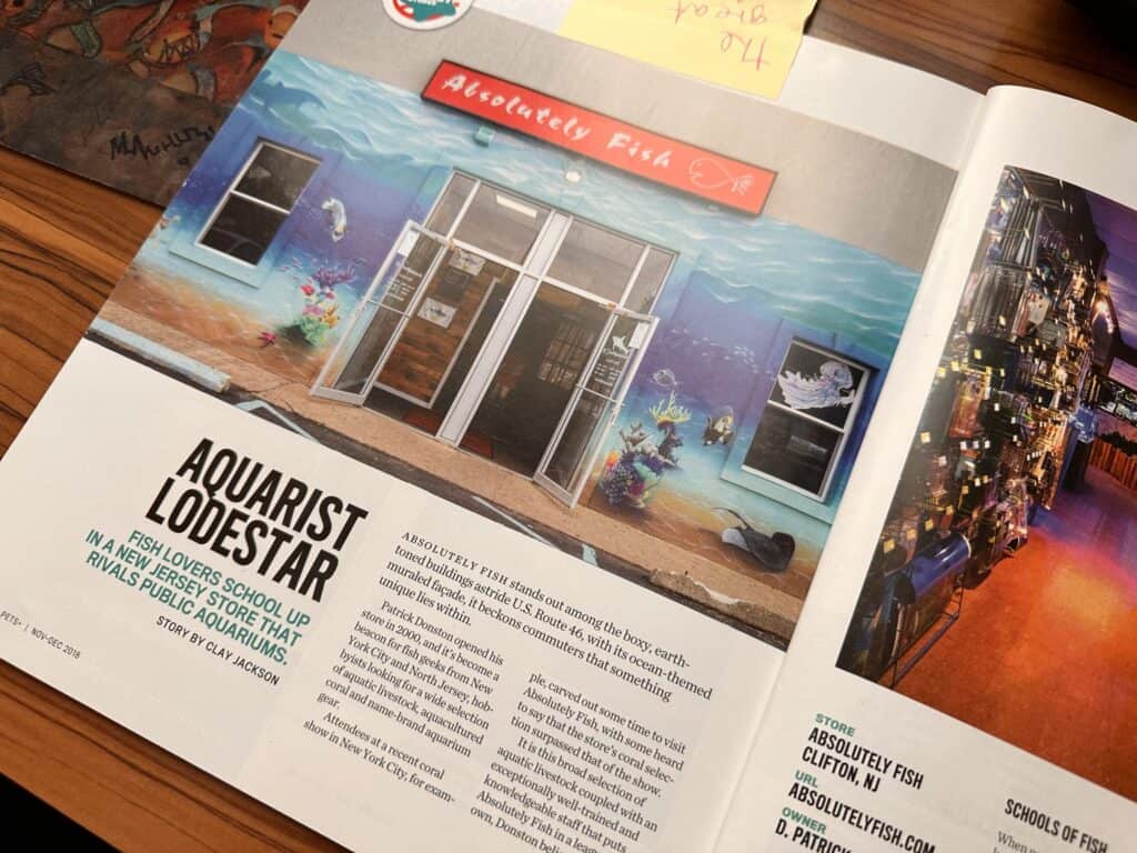 The Aquarists and Managers here at Absolutely Fish have been continuing improvements by receiving Animal Welfare Certificates from the Aquarium Vet in Melbourne, Australia. Yes, we’ve been fortunate enough to win Retailer of the Year by Pet Product News and a Retailer Live Animal Excellence Award from Global Pet Expo. We were even voted one of “America’s Coolest Pet Stores” by Pet + Magazine. I commend our Management and Aquarists on board for their commitment to Aquatic Life – Care – Education and Well Being. They are truly “stewards of the environment”.