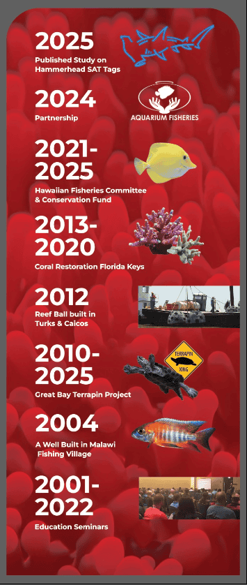 Did you know that we built a drinking well in Malawi, a reef ball in Turks and Caicos, replenished thousands of corals in Florida, and designed and financed an SAT program for the Great Hammerhead Study (published in 2025)?